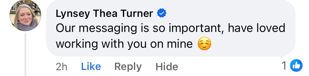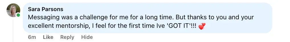 "Before I started working with you my messaging was all over the place... I'm finding it more comfortable now"